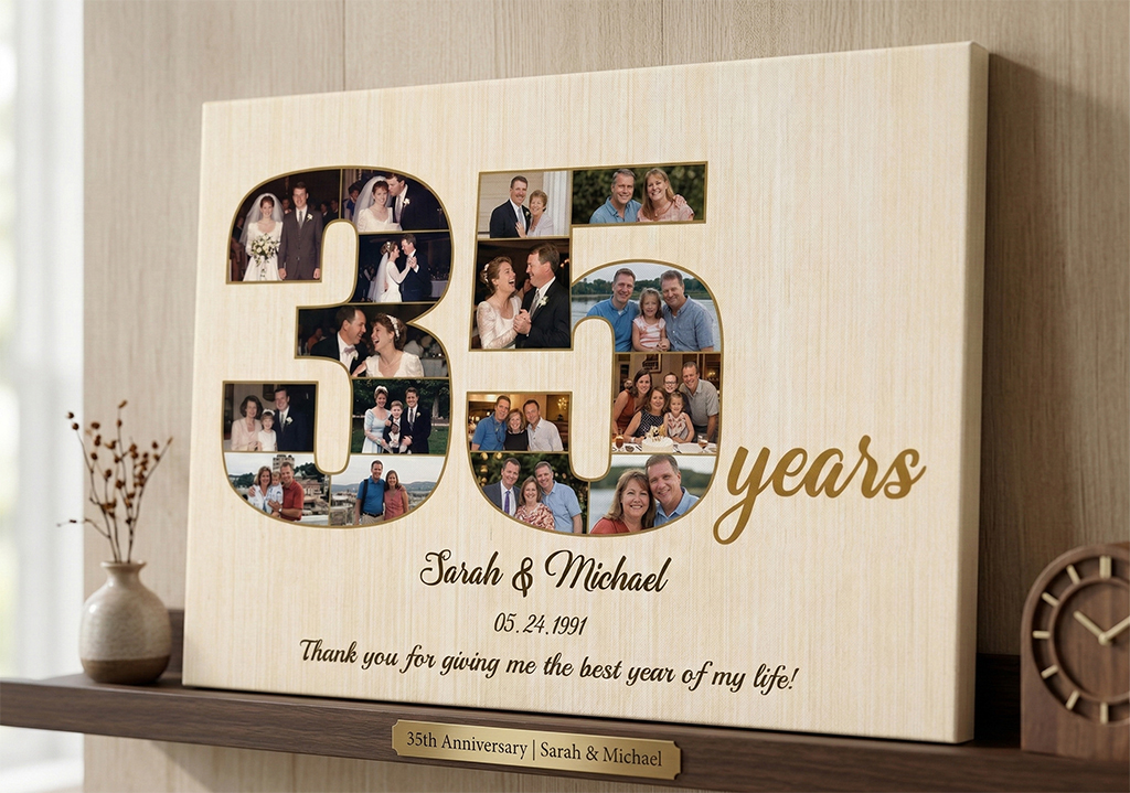 Reaching a thirty-fifth anniversary is a truly remarkable milestone. Therefore, you should honor this journey with a stunning visual tribute. Our custom photo collage canvas turns your favorite memories into lasting art. In addition, each piece captures the unique essence of your shared history.