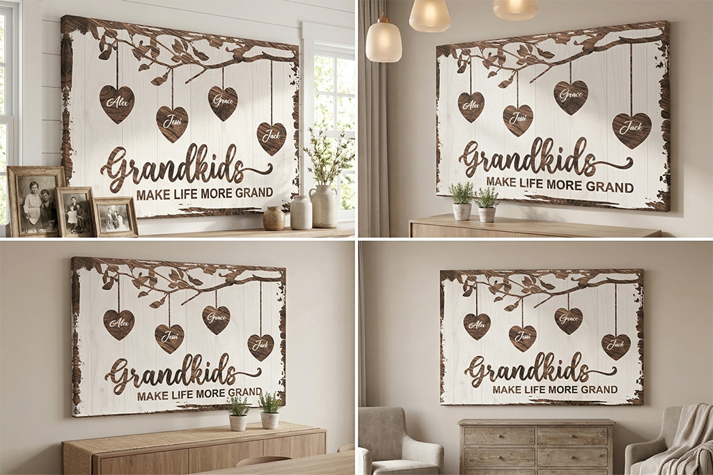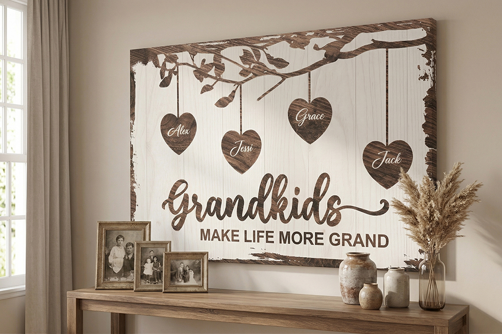 Decorating your home becomes truly special when you showcase your family history. Therefore, our Grandkids Canvas Gifts provide a beautiful way to honor your loved ones. This high-quality wall art features custom names for a personal touch. Additionally, it serves as a stunning focal point in any room.