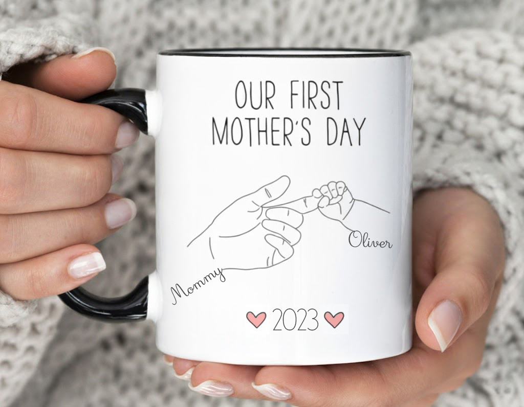 Our First Mothers Day Personalized Mug with Name and Year for First Time Mom