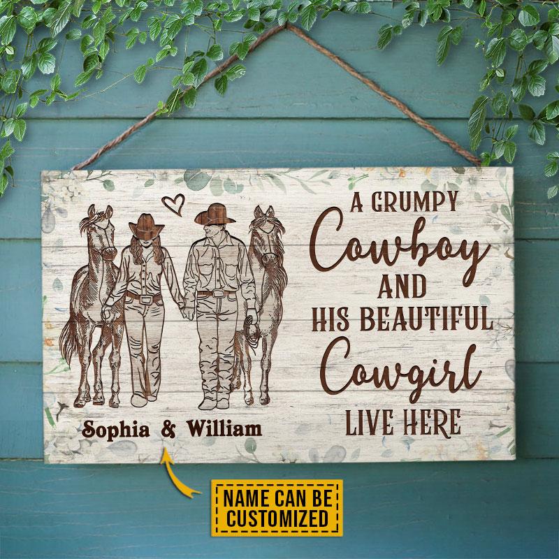 Personalized Cowboy Cowgirl Wood Sign – Rustic Couple’s Decor